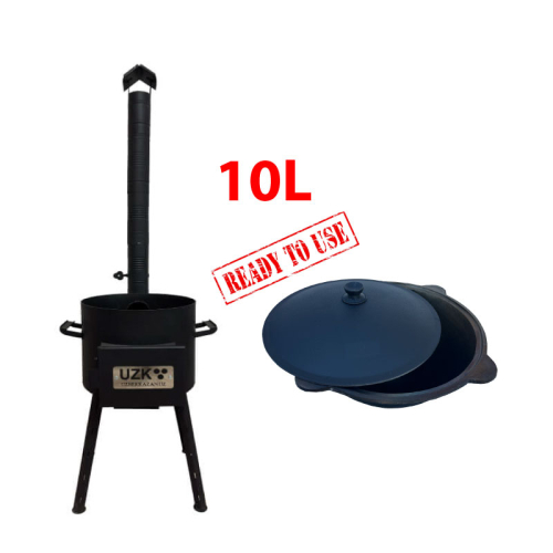 Cauldron set 8 L Ready to use N3 (Stove 3mm + cast-iron cauldron 8l + shumovka 47cm + ladle 47cm + gloves)
